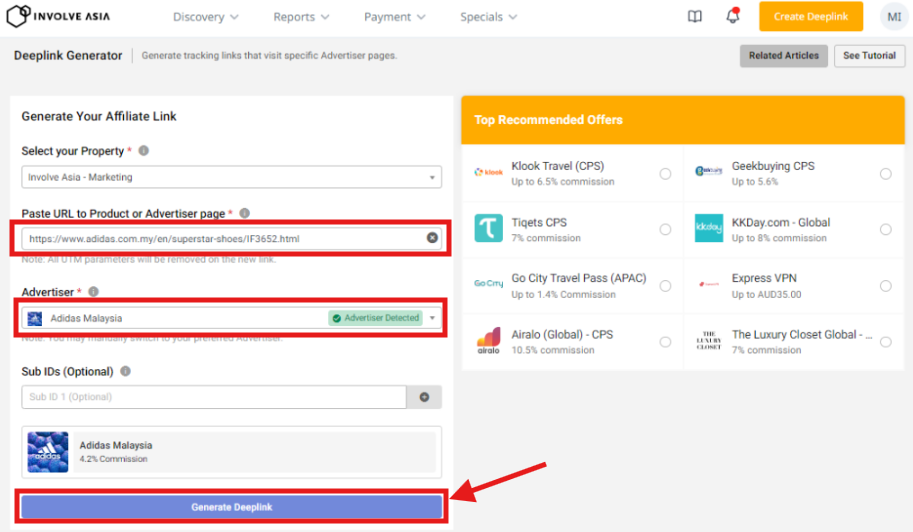 Convert any Adidas product link into your affiliate tracking link with our Deeplink Generator.