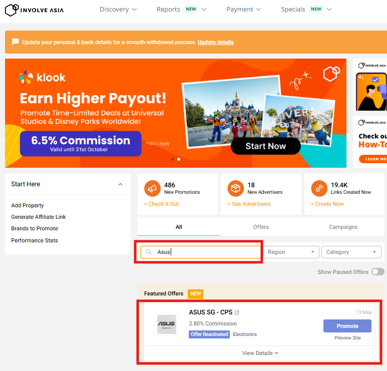 Joining Involve Asia as a publisher allows you to promote multiple brands at one time using the same login credentials and a single platform. You can be promoting Asus alongside other tech brands – and even non-tech ones!