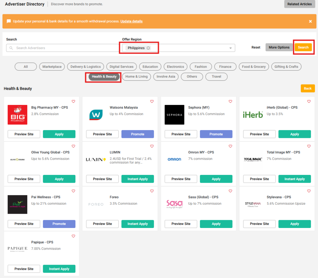 What are the best beauty affiliate programs Filipinos can promote on Involve Asia?