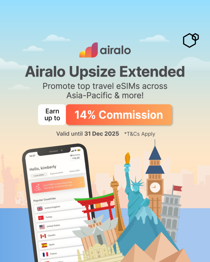 Airalo is a leading global eSIM provider and an excellent choice for travel-focused creators who want to promote affordable, convenient mobile data solutions for international trips.
