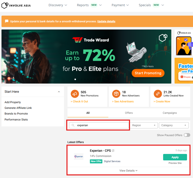 How to Join the Experian Affiliate Program on Involve Asia