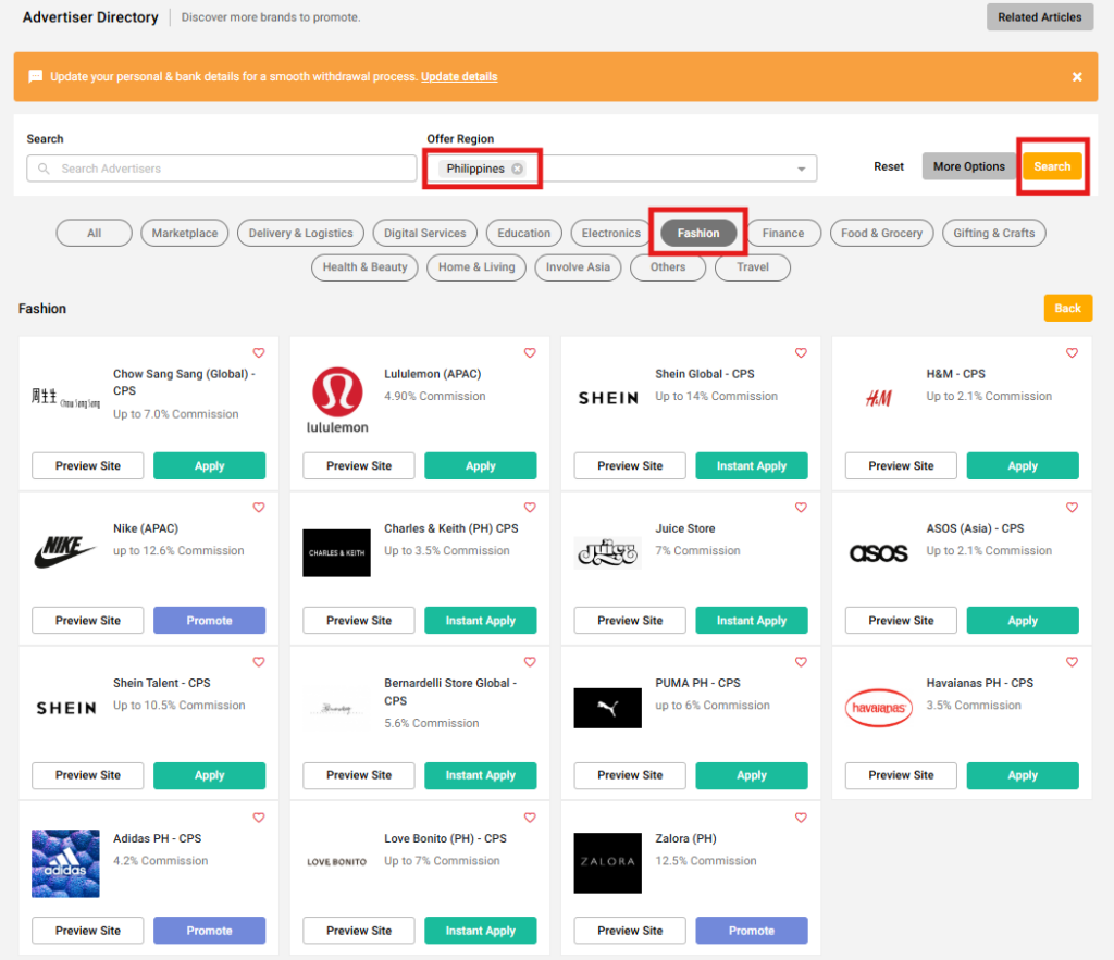 What are the best fashion affiliate programs Filipinos can promote on Involve Asia?