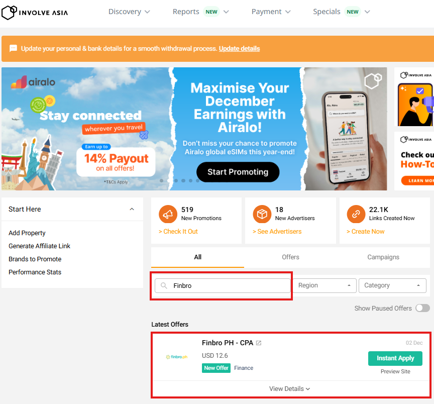 How to Join the Finbro Affiliate Program on Involve Asia