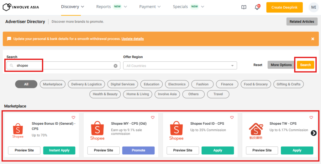 Once you have filled out the profile information, you are all set to promote various brands and earn affiliate payouts.