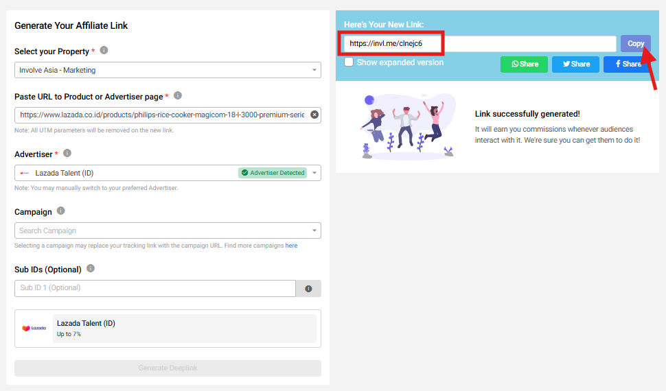 Read: How to use your unique affiliate links on Involve Asia
