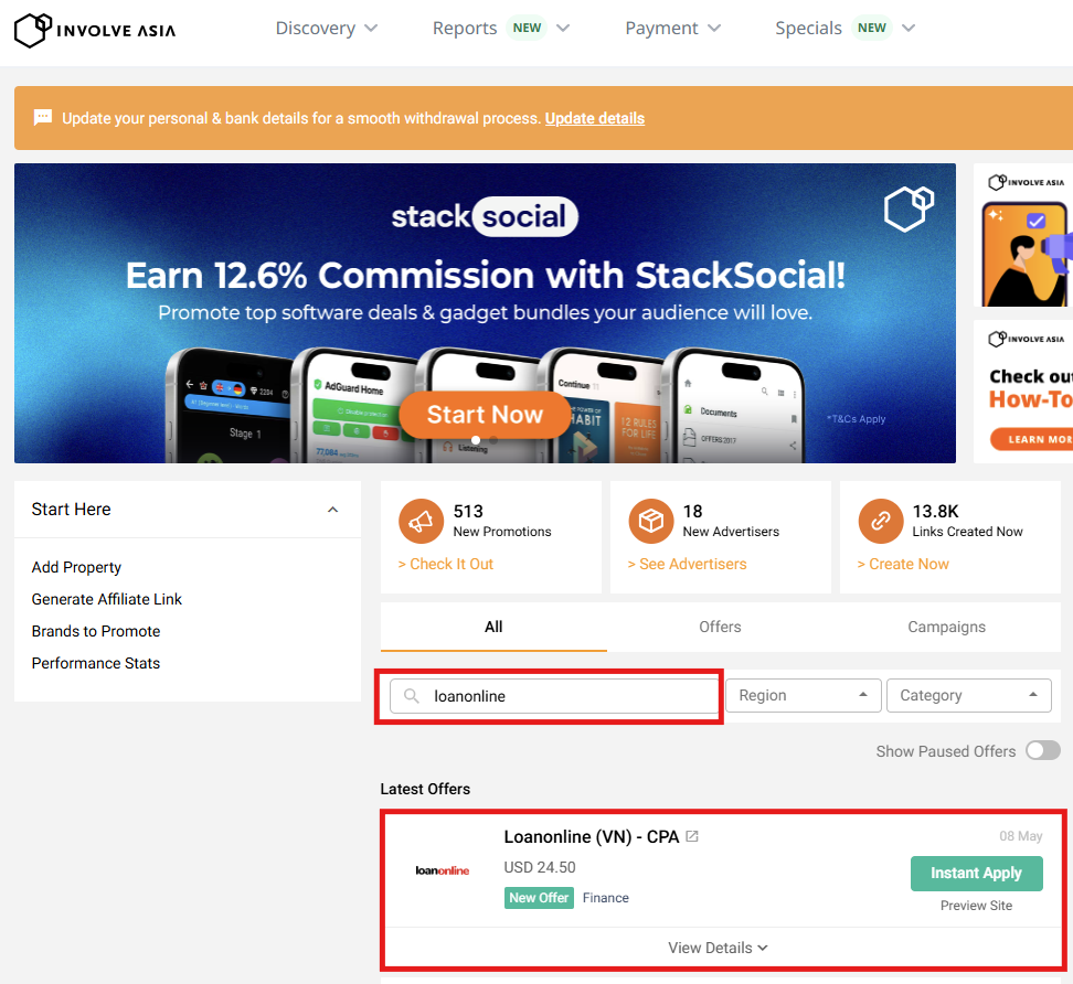 How to Join the Loanonline Affiliate Program on Involve Asia