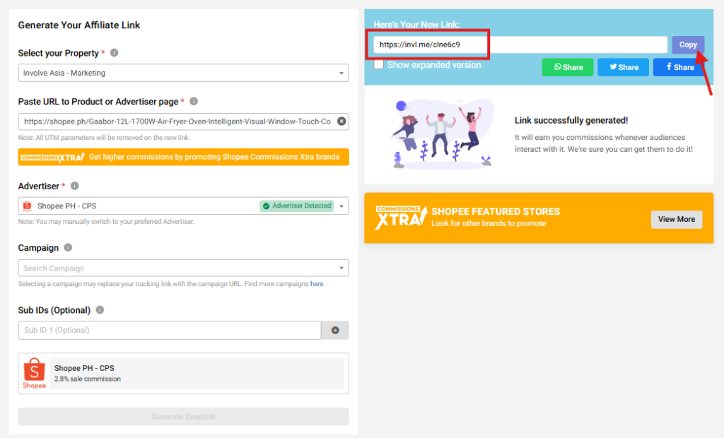- Involve Asia allows you to manage Shopee affiliate links easily
