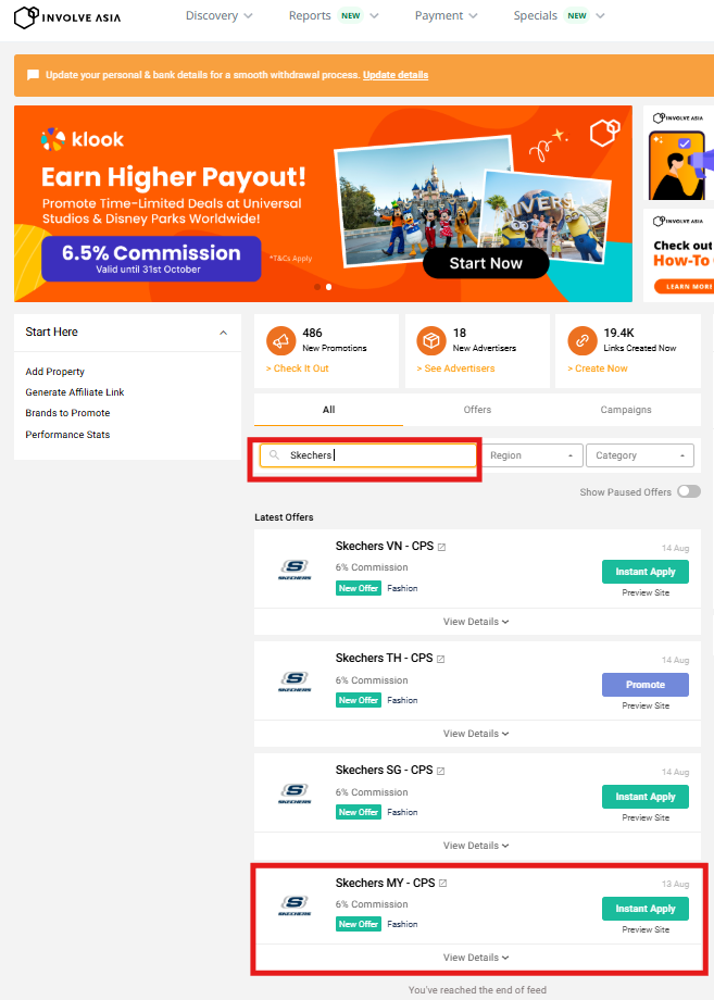 Through Involve Asia, affiliates get access to Skechers’ affiliate program with tools such as: