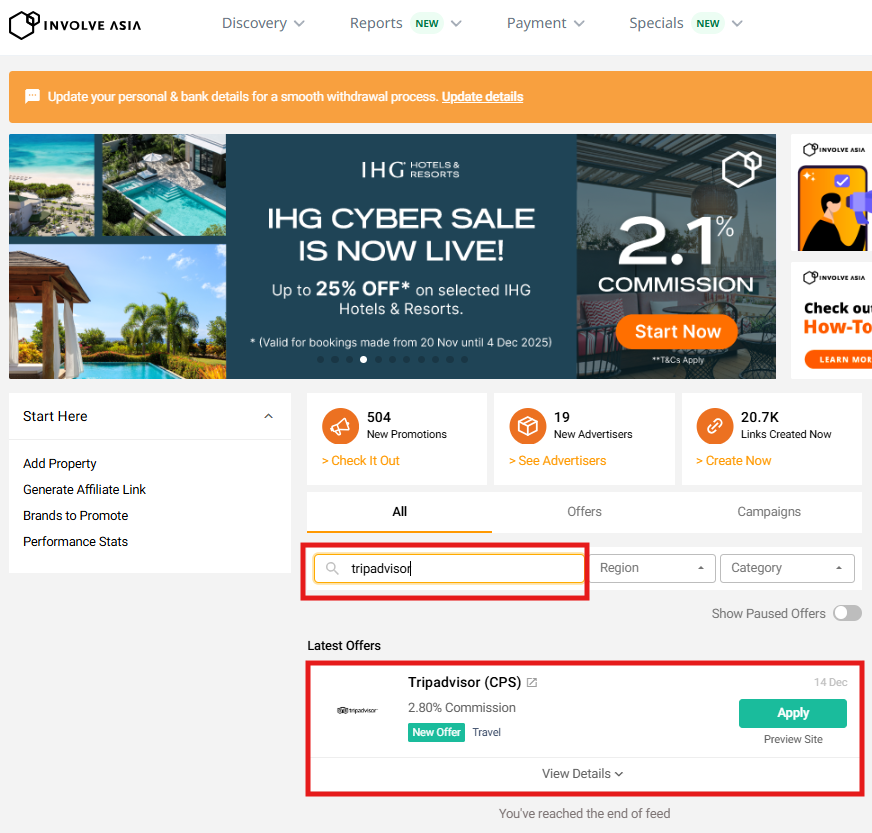 How to Join the Tripadvisor Affiliate Program on Involve Asia
