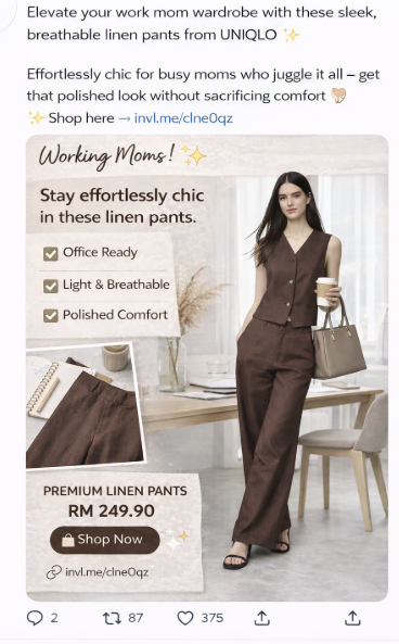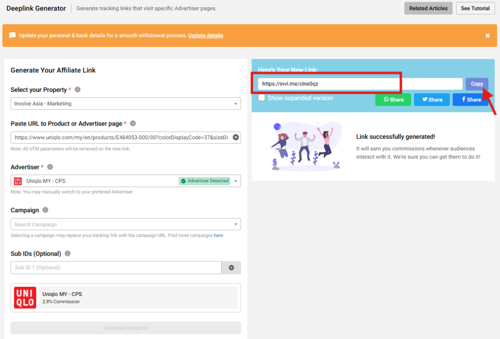 Beginners can absolutely promote UNIQLO through Involve Asia, even if they have a small following or are new to affiliate marketing. The UNIQLO brand is widely recognised and trusted, making it easy to convert clicks into sales with simple content like outfit posts, wardrobe tips, and product recommendations. Involve Asia’s deeplink tool also allows beginners to link directly to specific UNIQLO products, which improves conversion rates. As long as you create helpful, consistent content, you can earn commissions regardless of audience size.