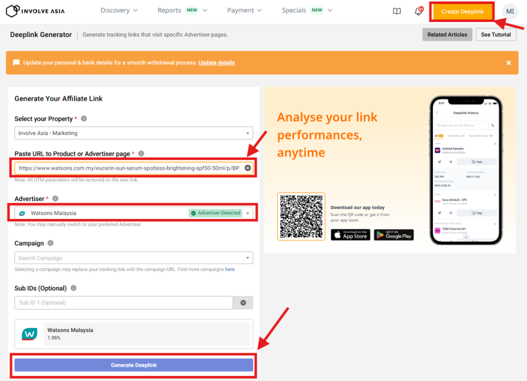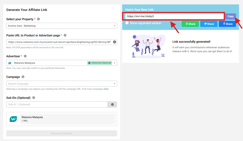 Convert any Watsons product link into your affiliate link and start sharing in your content.
